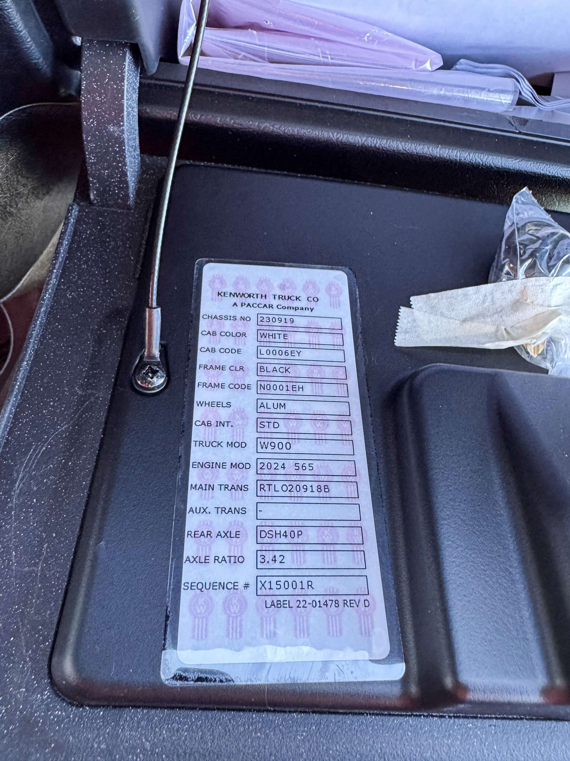 | Manufacturer: KENWORTH | VIN: 1XKWD49X7TR230919 |